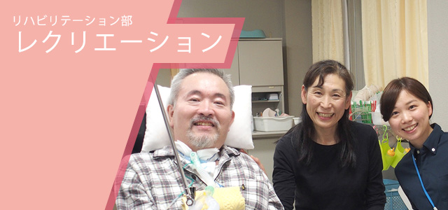リハビリテーション部のレクリエーションでは患者さまの意欲向上や生きがいの再発見を支援し、患者さま一人一人のニーズに合わせたレクリエーション活動を提供しています。レクリエーション活動を通じて楽しみながら身体を動かすことで心身機能の維持向上や心の元気の回復を目指します。また、患者さまの生活がより豊かになることを最重要課題とし、院内コンサートや年末年始イベント、外出サービスなど四季折々のイベントを企画しています。